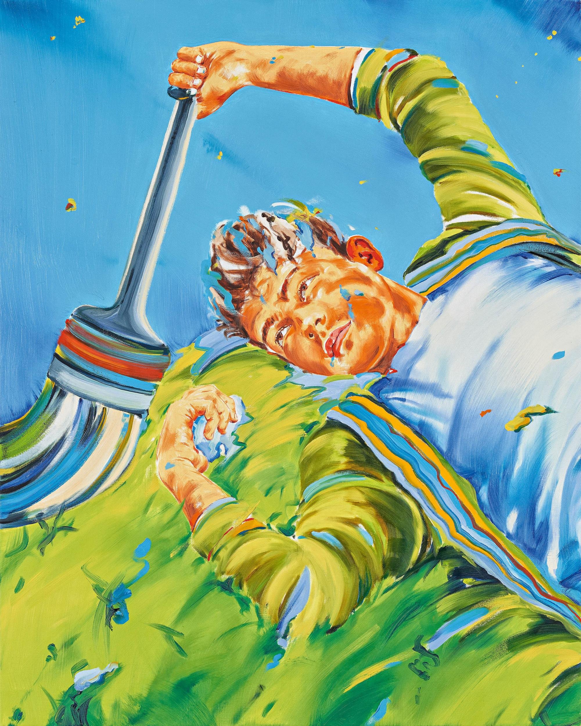 Der Pinsel fungiert dabei als ambivalentes Werkzeug: Er kann kommentieren, dokumentieren oder ästhetisieren. Bisky reflektiert damit die Macht visueller Darstellung in Zeiten, in denen Konflikte ständig über Bilder vermittelt werden – ob durch Kunst, Medien oder soziale Netzwerke. Die Figur wirkt gleichzeitig stark und verletzlich, gefangen in einem Spannungsfeld aus Schönheit, Bedrohung und Inszenierung.